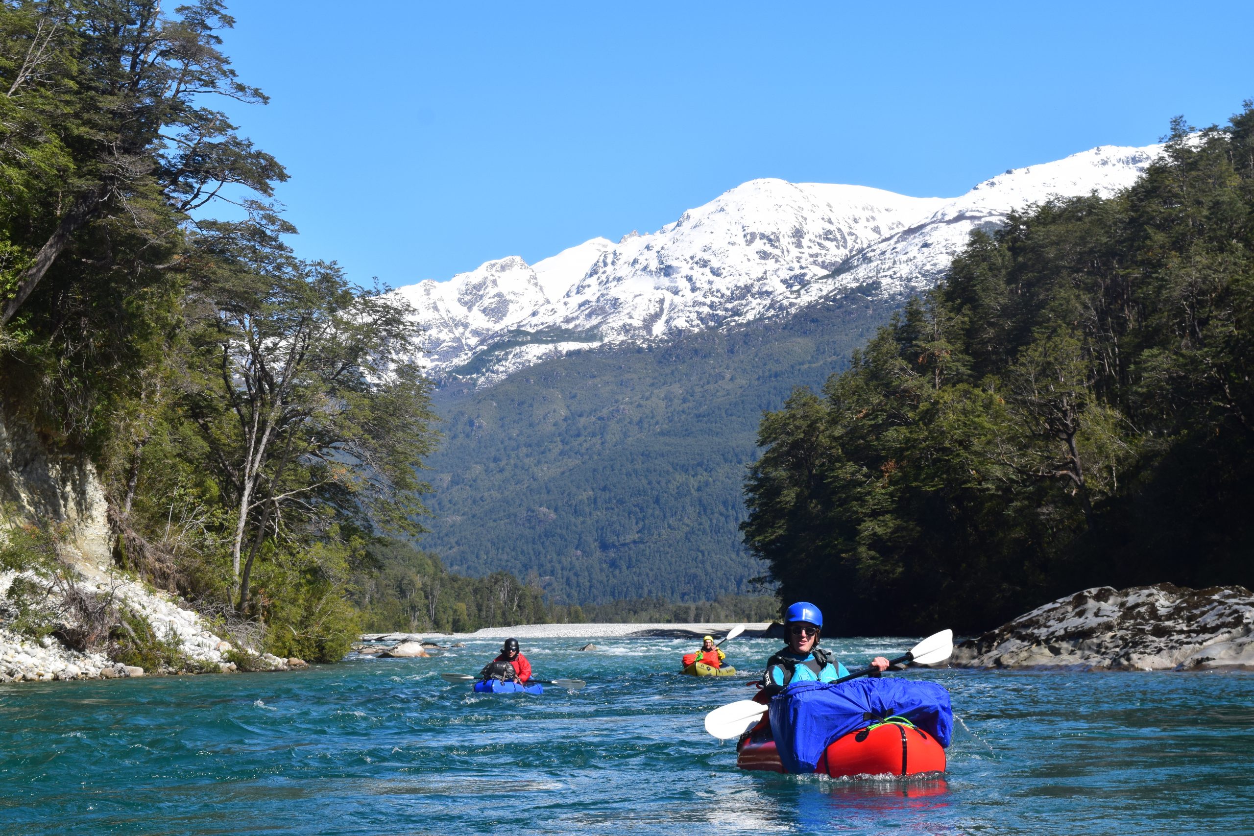 Día 4: Packrafting de 26 kilómetros desde Rincón Bonito hasta Puerto Urrutia, remando unos 7 km. por el río Puelo. (5-6 horas de duración en total. Río clase II+. Dificultad media).
